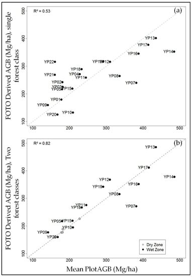 | Measured vs. Predicted AGB (n = 21) | 0.82 | 43.52 | 16.68 | 41.54 | 15.93 | ||||