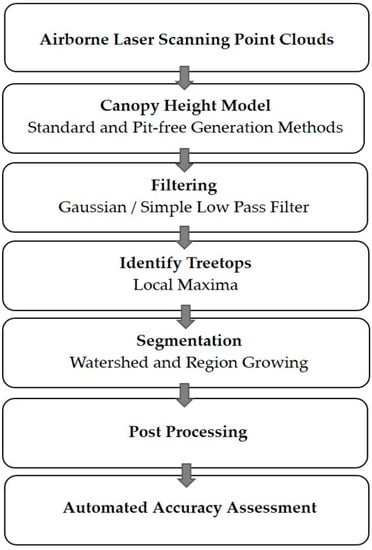 75]. Nevertheless, the delineation accuracies achieved by segmentation algorithms can vary due to a combination of factors including: the effectiveness of the algorithm, forest characteristics and ALS data acquisition and properties [