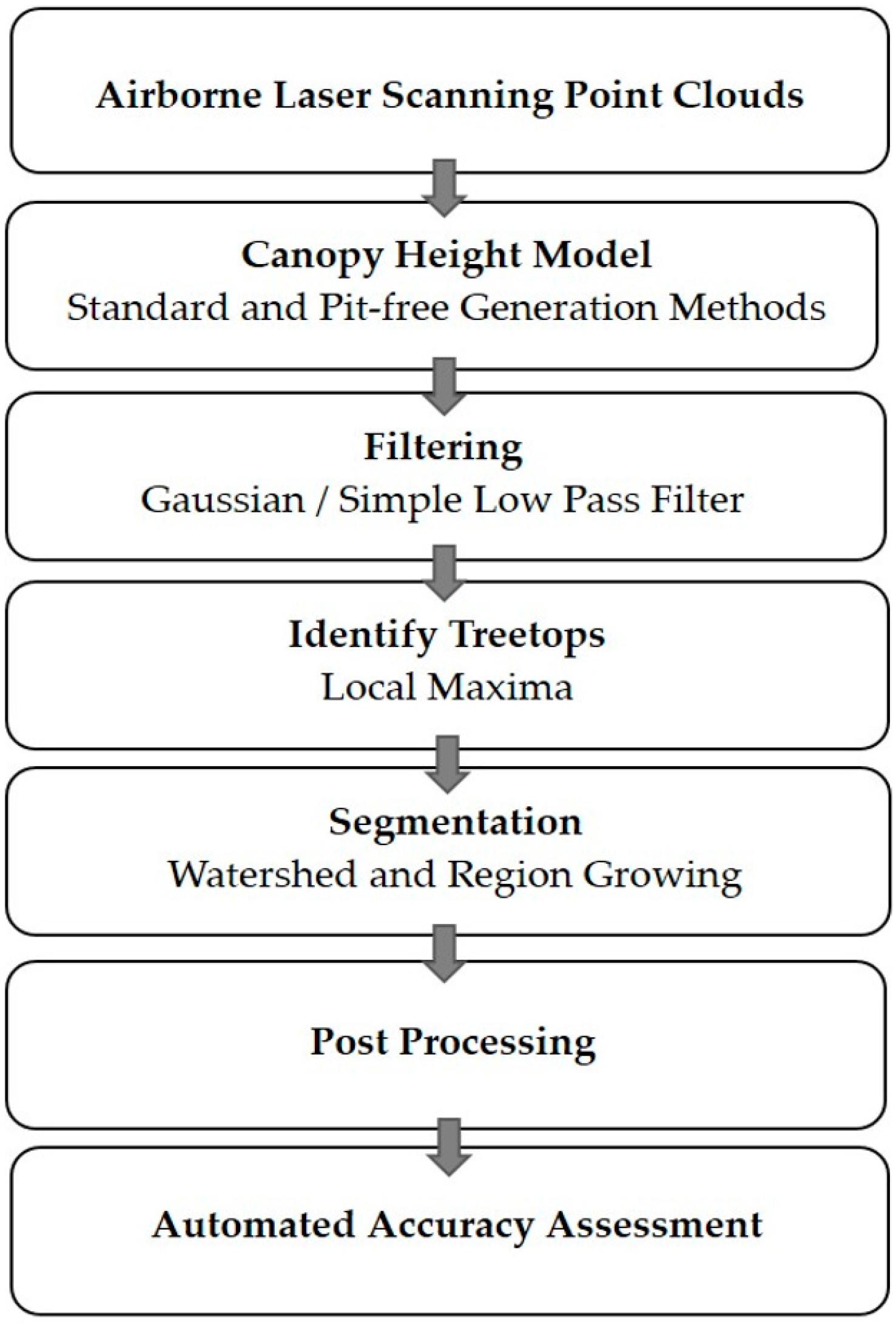 31]. To address the problem, many studies have used image smoothing techniques such as Gaussian filtering, to remove intra-canopy elevation artefacts [