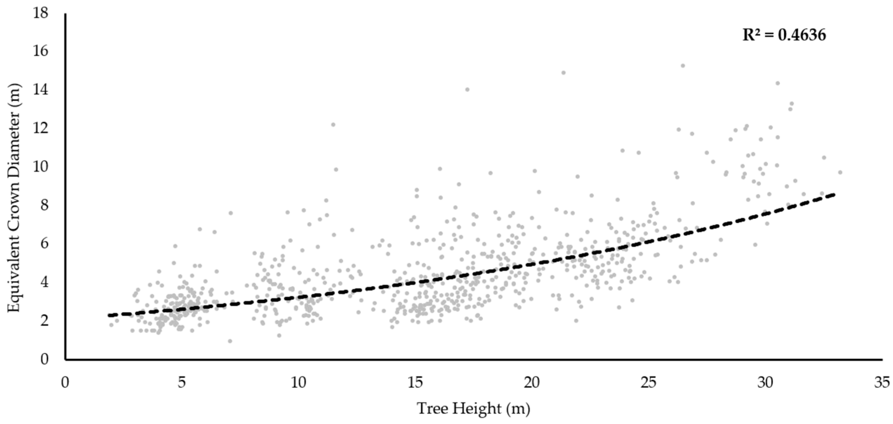 The results from the study also highlighted that CHM resolution used in the ITC segmentation strongly influences segmentation accuracy. Relationships between the maximum canopy height and optimum CHM pixel size were not unexpected given the strong influence of tree height on crown diameter [