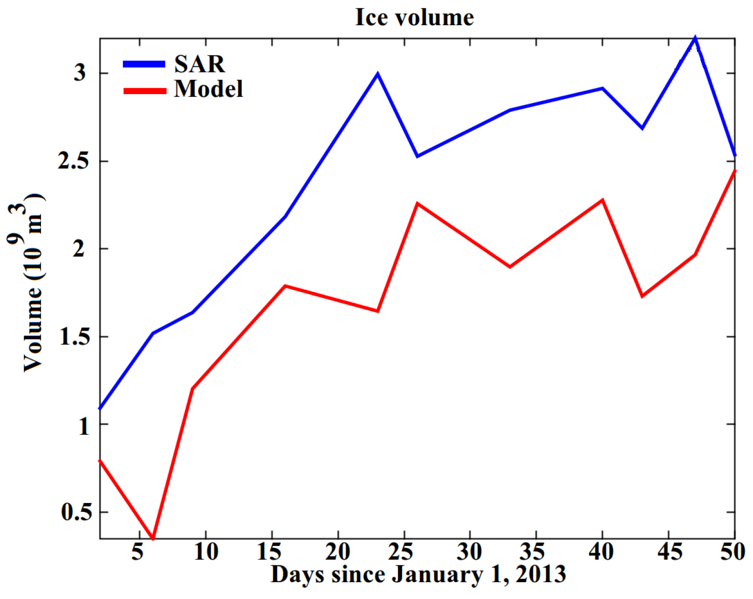 - Similä, M.; Mäkynen, M.; Karvonen, J.; Gegiuc, A.; Gierisch, A. Modeled sea ice thickness enhanced by remote sensing data. In Proceedings of the European Space Agency Living Planet Symposium, Prague, Czech Republic, 9–13 May 2016.