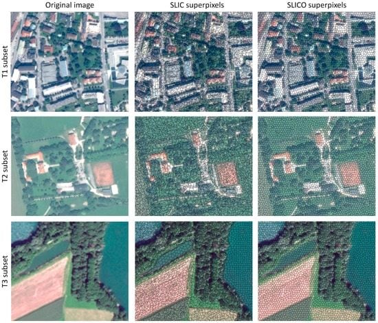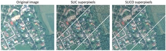 - Csillik, O. Superpixels: The end of pixels in obia. A comparison of stat-of-the-art superpixel methods for remote sensing data. In Proceedings of the GEOBIA 2016: Solutions and Synergies, Enschede, The Netherlands, 14–16 September 2016; Kerle, N., Gerke, M., Lefevre, S., Eds.; University of Twente Faculty of Geo-Information and Earth Observation (ITC): Enschede, The Netherlands, 2016. [Google Scholar]