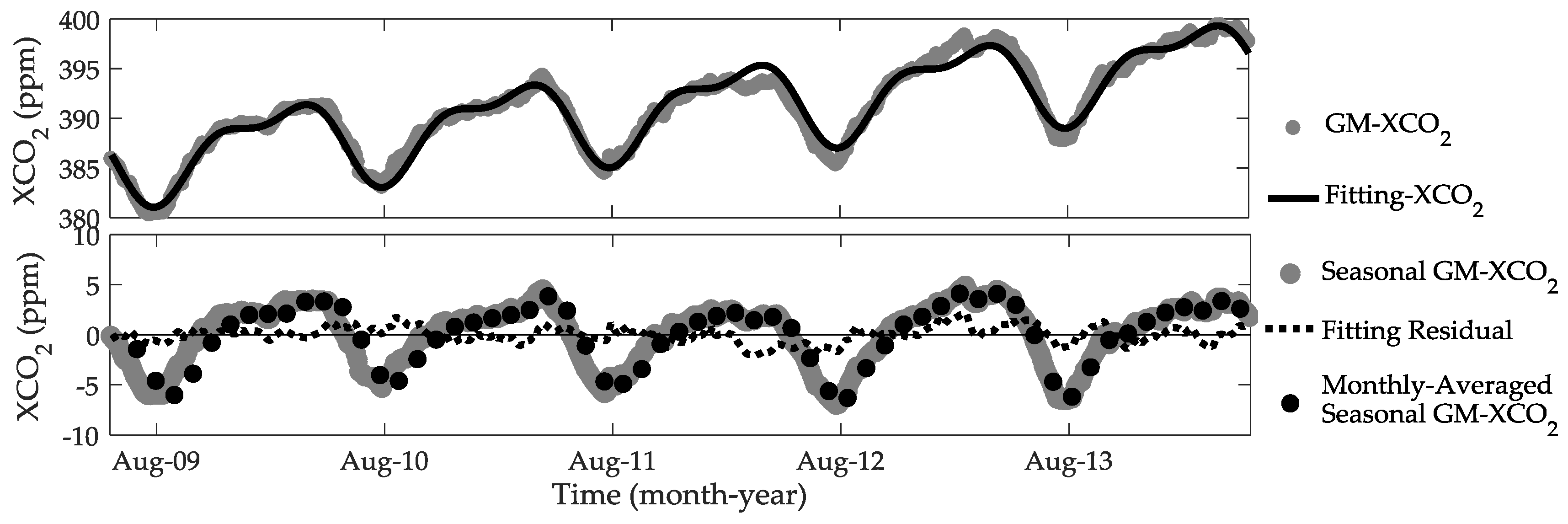 2.2. Calculation of Seasonal Cycle Amplitude of XCO2