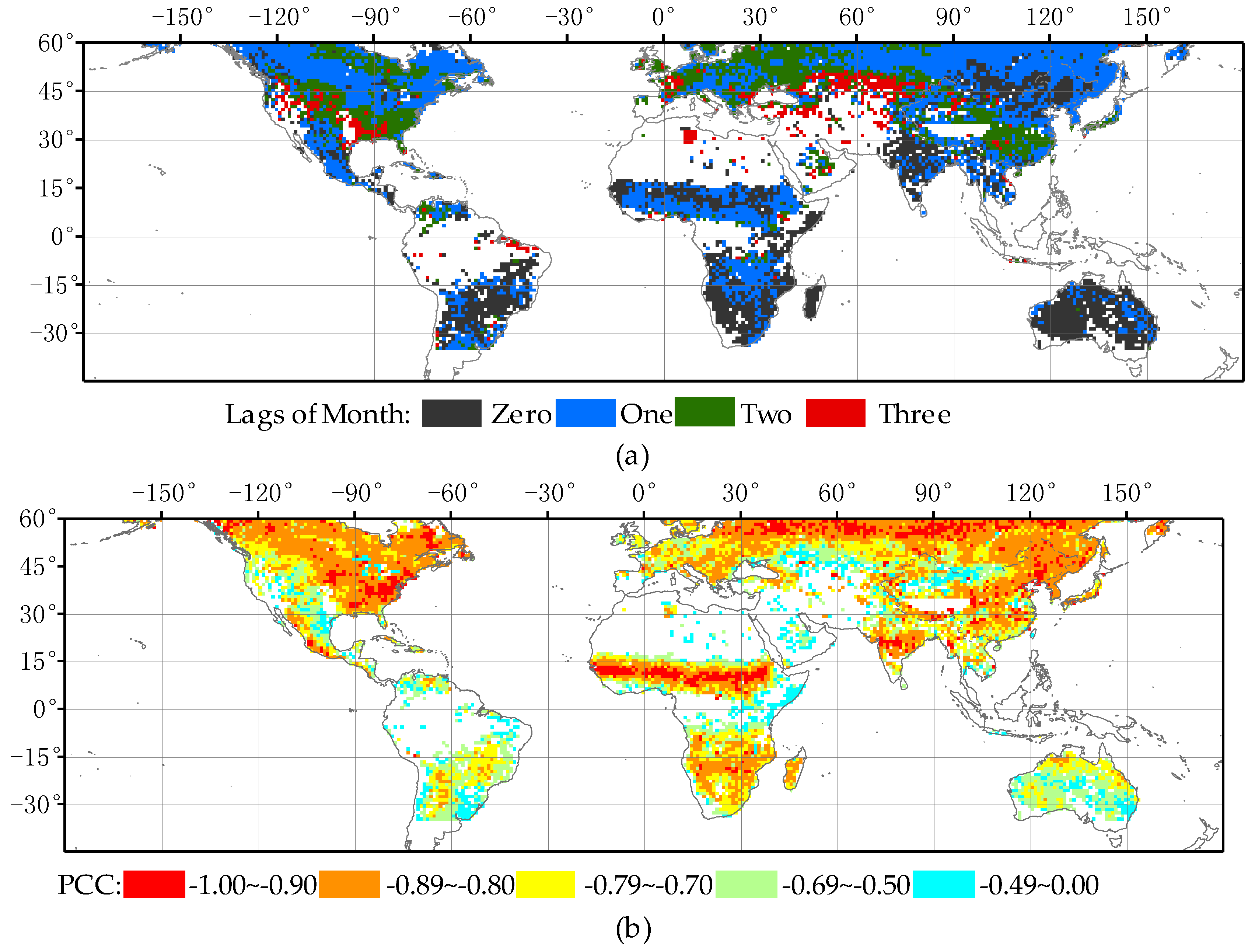 3.3. Global Pattern of Phase Delay Effect of XCO2 to NDVI