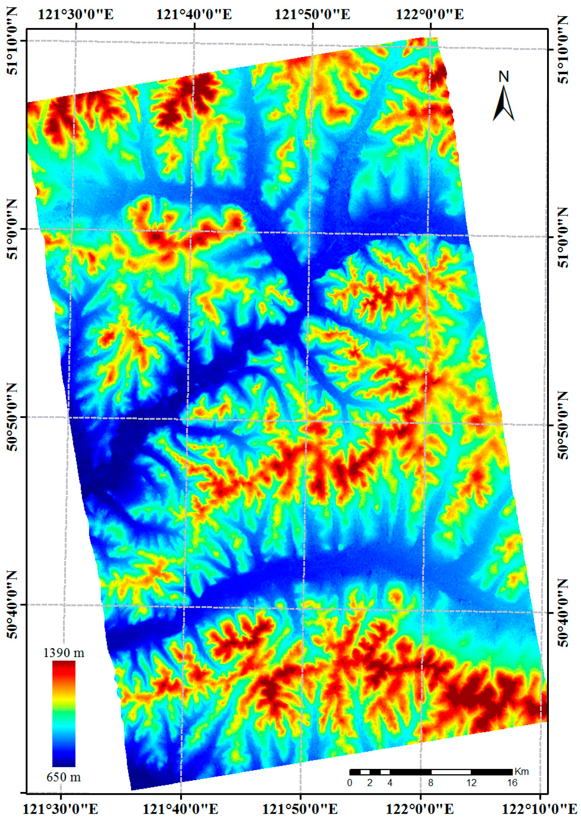 ψ of SRTM DEM, whose R value was 0.9281. And