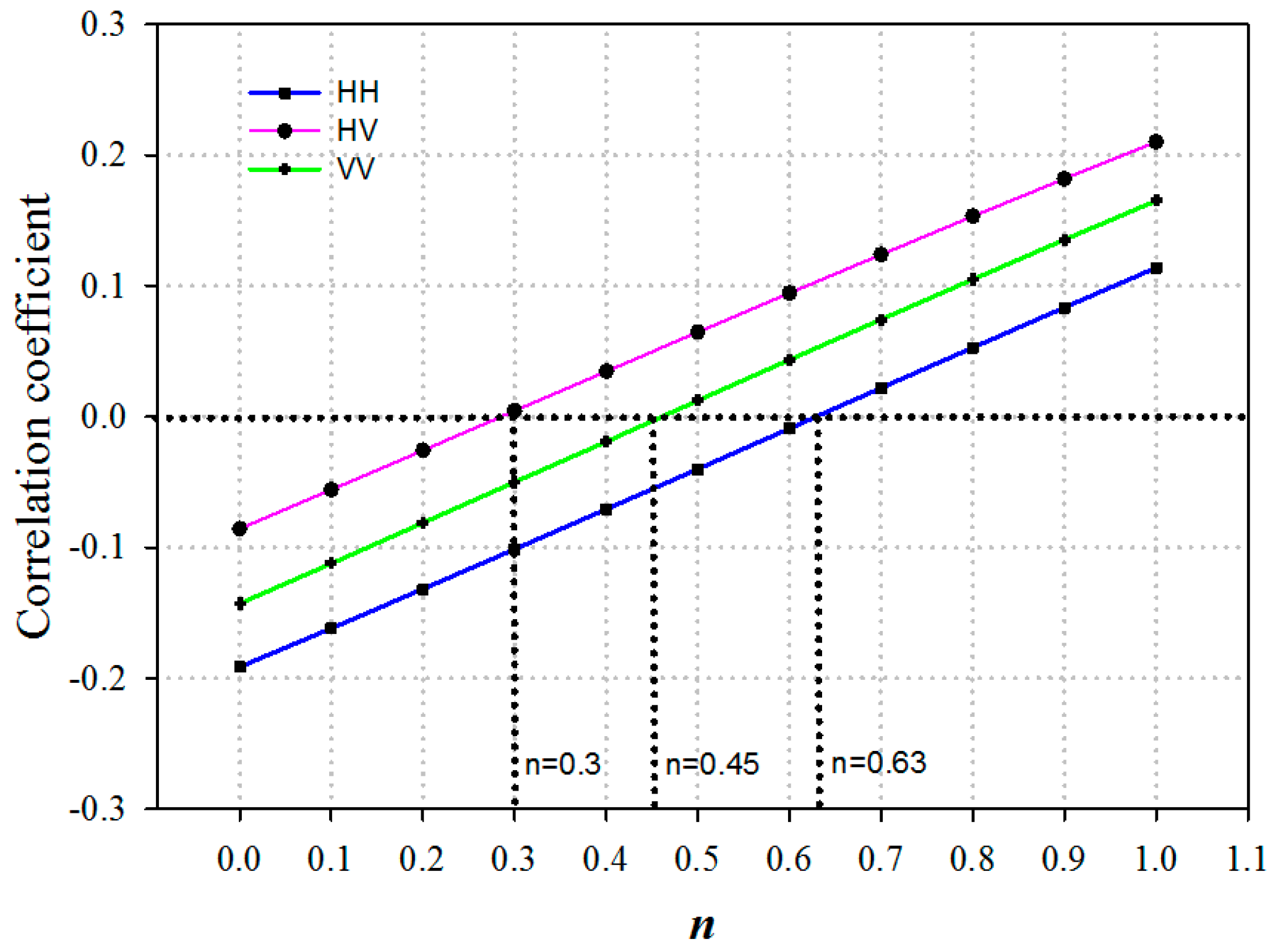n equals 1 for different polarisations, the result of the AVE correction is a standard backscatter coefficient