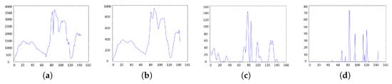 An input hyperspectral pixel in (a) and features extracted by the convolutional layer in (b–d): (b) is a smoothed curve of (a); (c) tries to extract local peaks in (a); and (d) captures slope information in (a).
