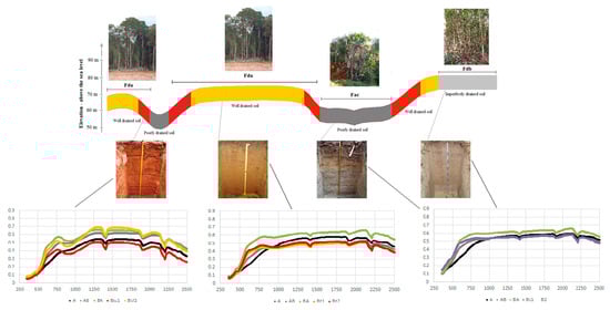 Soil chemical and physical properties have been predicted by reflectance spectroscopy successfully in the past [5,6,7,8]. However, the focus has been on subtropical and temperate soils, whereas soils from tropical agro-forest regions have received less attention, especially those from tropical rainforests [6,7,8,9].
