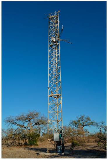 - Scholes, R.J.; Gureja, N.; Giannecchinni, M.; Dovie, D.; Wilson, B.; Davidson, N.; Piggott, K.; McLoughlin, C.; Van der Velde, K.; Freeman, A. The environment and vegetation of the flux measurement site near Skukuza, Kruger National Park. Koedoe-Afr. Prot. Area Conserv. Sci. 2001, 44, 73–83. [Google Scholar] [CrossRef]