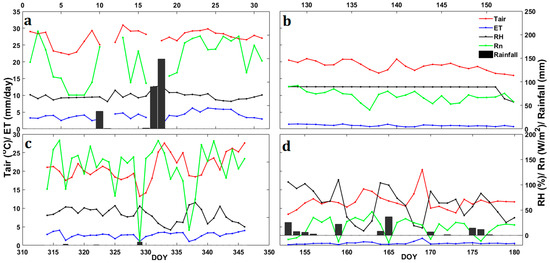 3.1. Ground Measurements of Evapotranspiration and Meteorological Input Variables