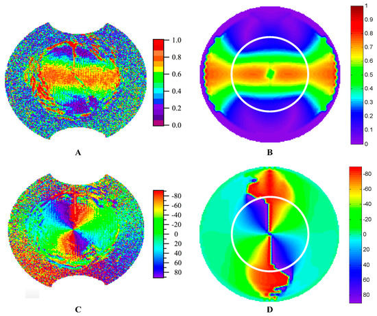 Q/I (A); and U/I (B) graphs measured by Bhandari [24]. Simulated: Q/I (C); and U/I (D) graphs.
