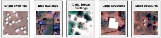 Examples of typical dwelling types detected in refugee and IDP (internally displaced persons) camps in Eastern Africa. Source: [2], adapted.
