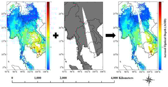 The objective of this study was to recover the missing pixels in Aqua AOD datasets caused by clouds and typical gaps between MODIS orbit-scanning swaths [17,42].