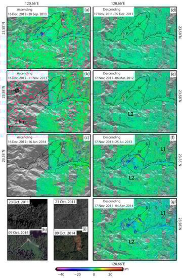 - Sun, Q.; Zhang, L.; Ding, X.L.; Hu, J.; Liang, H.Y. Investigation of slow-moving landslides from ALOS/PALSAR images with TCPInSAR: A case study of Oso, USA. Remote Sens. 2014, 7, 72–88. [Google Scholar] [CrossRef]