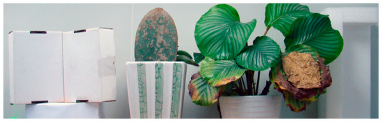 This research was conducted at the laboratory at Wuhan University in Central China. Seven experimental materials were used: a white wall; a white paper box; a cactus; a ceramic flowerpot; healthy scindapsus leaves; withered scindapsus leaves; and plastic foam. These seven materials were selected for two reasons: first, the artificial and vegetable materials were to demonstrate the multispectral LiDAR’s ability to classify artificial and vegetable targets; and second, the healthy and withered scindapsus leaves were included to validate whether different growing states could be recognized correctly.
