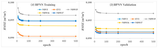 BPNN training (a) and validation (b) with various numbers of epochs. RSI indicates the LST/RSI combination.