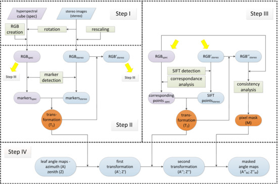 - Biskup, B.; Scharr, H.; Schurr, U.; Rascher, U. A stereo imaging system for measuring structural parameters of plant canopies. Plant Cell Environ. 2007, 30, 1299–1308. [Google Scholar] [CrossRef] [PubMed]