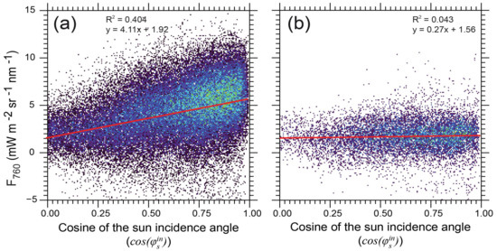 3.3. Variations of F760 as a Function of the Sun and Viewing Incidence Angle