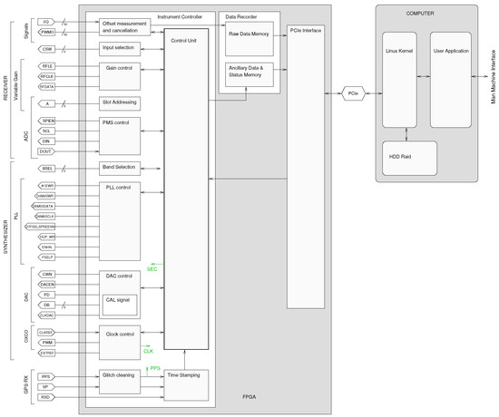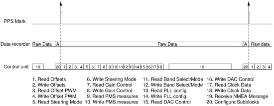 | Glitch cleaning | Acquires the 1PPS signal provided by the standard GPS receiver, cleans it from possible glitches and distributes it to the different blocks for general synchronization. |