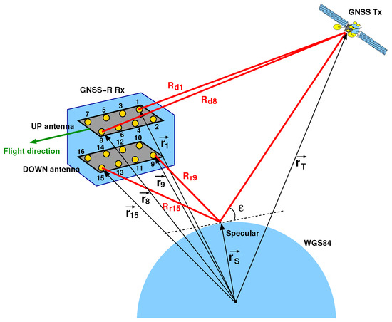 - We only consider here the case of an up-looking antenna tracking a given GNSS satellite and a down-looking antenna tracking the corresponding specular point of reflection over the Earth’s surface. However, other options could be also envisaged with SPIR, such as the observation of areas far from the specular one with the down-looking antenna.