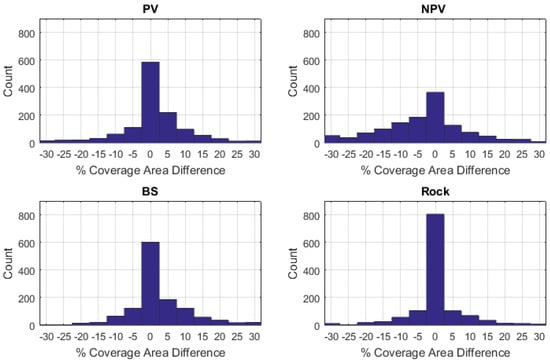 Accuracy validation data for scene-wide AMRD generated using RSRD-NNLS. All data are expressed in terms of percent coverage area differences.