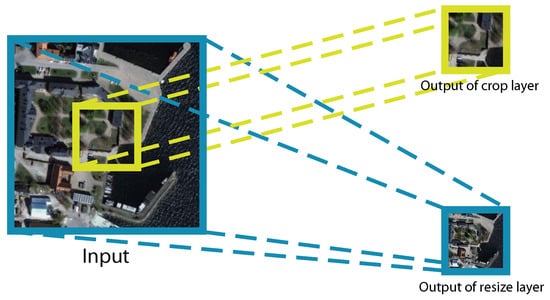 An illustration of the input/output of crop layer and the resize layer.