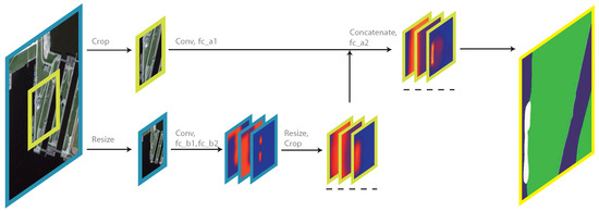 CNN proves to be extremely effective in image related tasks, such as object detection and classification [42,43]. Based on CNN, Fully Convolutional Networks (FCN) are designed to predict a label map rather than a single label for an input image, by replacing fully connected layers in CNN with small sized convolution layers [44]. FCN’s pixel-to-pixel label map output naturally suits the need of semantic labeling. Figure 1, modified from in [44], shows a typical FCN structure, when used to semantic label a remote sensing image.