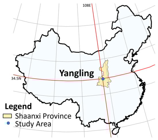 Map of China showing the location of the test area of Yangling (Shaanxi Province).