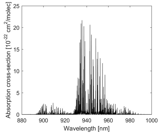 2O has an absorption band at around 940 nm. The absorption cross-section of this band was calculated for a line width of 0.01 cm