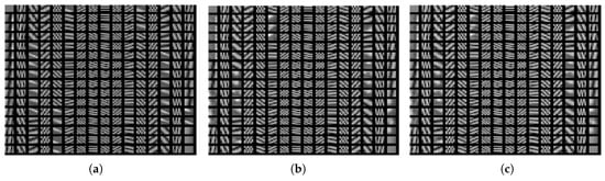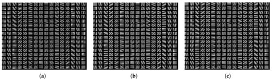 where K is the maximum number of atoms for each patch of . Generally, K is set much smaller than the number of atoms in the dictionary, i.e., . Equation (9) can be solved by the OMP algorithm []. The positions of the nonzero elements of the obtained code are denoted by .