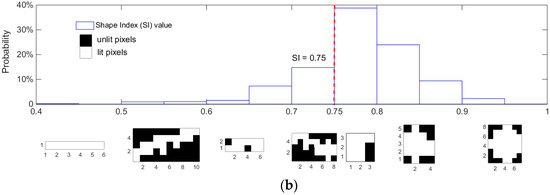 where A is the area and P is the total perimeter. Ideally, SI value ranges from 0 to 1, where it has a large value for a circle-like shape and a small value for a belt-like shape. As shown in Figure 4b, we select the optimal SI as 0.75 to distinguish scatter expansion from corridor expansion by checking the shapes of all possible agglomerations. Fourthly, similar to the definition of expansion level, we define the adjacent expansion level (AEL), scatter expansion level (SEL), and corridor expansion level (CEL) as the following Equation (4).