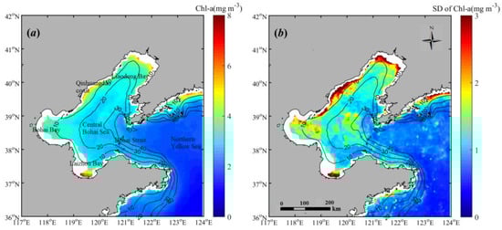3.2. Chl-a Spatial Distribution and Variability in the Bohai Sea