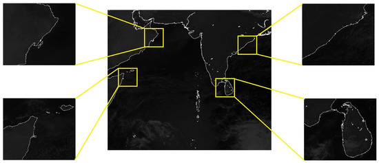 - Jianbin, X.; Wen, H.; Zhe, L.; Yirong, W.; Maosheng, X. The study of rough-location of remote sensing image with coastlines. In Proceedings of the 2003 IEEE International Geoscience and Remote Sensing Symposium (IGARSS’03), Toulouse, France, 21–25 July 2003; Volume 6, pp. 3964–3966. [Google Scholar]