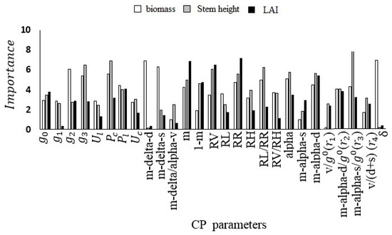 In this paper, we used the Random Forest package in the R software for our studies. The number of regression trees (ntree in R) was optimized using the training dataset and RMSE to find the values that could best predict the growth parameters. The number of input variables per node (mtry in R) was tested from 1/3 to the whole number of CP parameters, and then, the mtry values yielding the lowest RMSE were selected. Meanwhile, in this study, SAR observations at P1 contained little vegetation information, and at P5, as the crop entered into the productive and harvest stage, which seemed to be too late for farm practice, also showed fluctuated values for most of the CP parameters; as a result, only P2, P3 and P4 were stable and selected for the inversion of growth parameters [27].