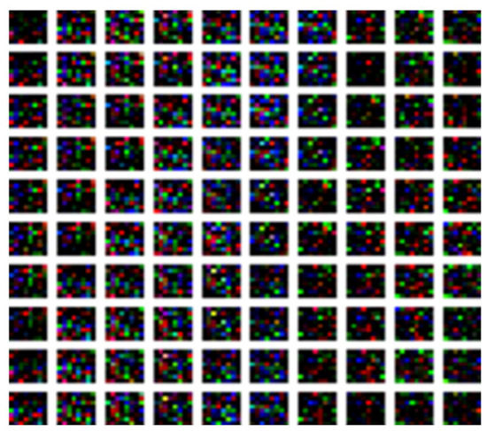 Here, what we should pay attention to is the selecting feature number which is the only tunable parameter in the process of dictionary learning. Generally, a greater numbers of features correlates to a better performance. For consistency with the input dimension of the vectorization image set to form a square matrix, we choose 192 features for dictionary learning and saliency analysis. In our experiments, we adopted the off-the-shelf L-BFGS [49] package to optimize the sparse filtering objective until convergence with a maximum iteration number of 100. The learned dictionary we have obtained is shown in Figure 4.