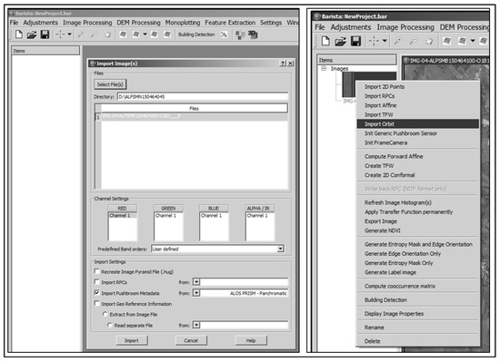 ALOS PRISM images are made available to users at four different processing levels. The processing levels and characteristics of each level are shown in Table 2 [1]. For the application of rigorous models, processing levels 1A or 1B1 must be used.