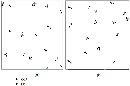 Distribution of ground control points and check points in triplets n.1 (a) and n.2 (b).