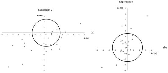 Planimetric discrepancies in check points from experiments 3 (a) and 4 (b).