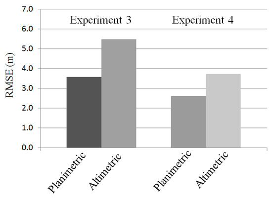 Graphical representation of planimetric and altimetric RMSE from experiments 3 and 4.