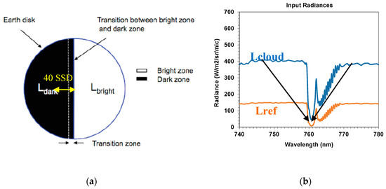 Non uniform scene (a) for spatial stray-light and non-uniform spectra (b) for spectral stray-light evaluation. Lbright = Lcloud, Ldark = Lref.