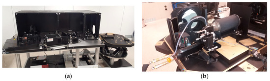 (a) Optical Ground Support Equipment (OGSE) used for the phase A-B1 tests of the FLORIS BreadBoard (BB), (b) FLORIS BB for telescope and HR spectrometer.