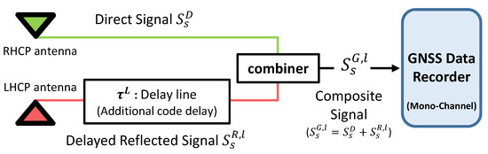 In the case of the civil component of a GPS-L1 signal received from the satellite s, the direct signal and the reflected signal can be defined as follows: