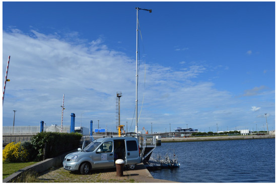 Experimental vehicle carrying the GNSS-R altimeter. The observed GPS signals are reflected on an artificial basin in Calais, France (50.962689N, 1.857305E).