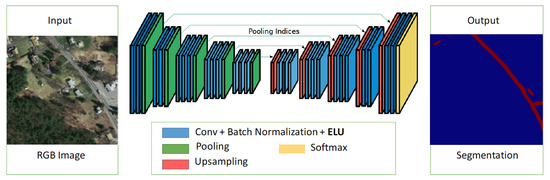 - Badrinarayanan, V.; Handa, A.; Cipolla, R. Segnet: A deep convolutional encoder-decoder architecture for robust semantic pixel-wise labelling. arXiv, 2015; arXiv:1505.07293. [Google Scholar]