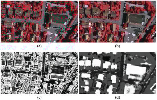 12]. In addition, in orthoimages, the geometric positions of corresponding pixels on obvious ground objects from different images may be different if they are not included in the digital terrain model (DTM) or wrongly modeled [