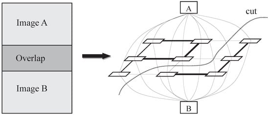 25]. To some extent, the optimal seamline detection problem can be regarded as the inverse process of image segmentation. The aim of image segmentation is to separate the segments in the positions with large differences between adjacent pixels. In contrast, the optimal seamline locates on the positions with small differences between adjacent images. Therefore, the optimal seamline can be detected via graph cuts as image segmentation does. Kwatra et al. [