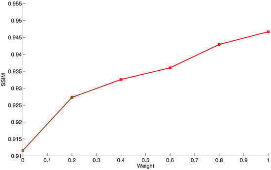 , the seamlines successfully rounded these two buildings as expected and chose to cross nearby roads when the CNN-based energy term was considered. In addition, we also applied the SSIM index to quantitatively measure the qualities of seamlines detected by using different weights, and the quality curve is demonstrated in