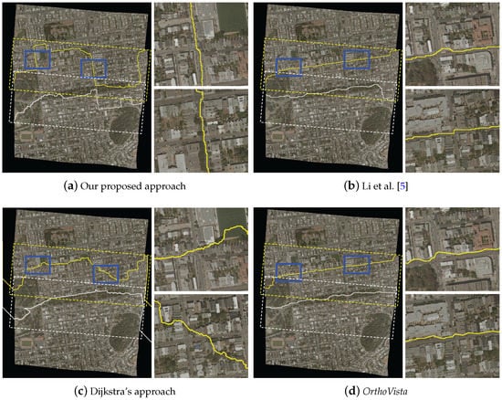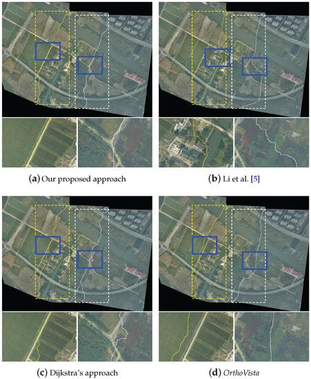 Figure 14a. In addition, we also can find that the rest of the three approaches can also detect high-quality seamlines, as shown in