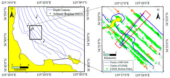 - Wang, C.K.; Philpot, W.D. Using airborne bathymetric LiDAR to detect bottom type variation in shallow waters. Remote Sens. Environ. 2007, 106, 123–135. [Google Scholar] [CrossRef]