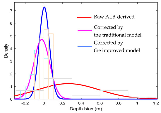 Zhao, J.; Zhao, X.; Zhang, H.; Zhou, F. Improved Model for Depth Bias Correction in Airborne LiDAR Bathymetry Systems. Remote Sens. 2017, 9, 710. https://doi.org/10.3390/rs9070710